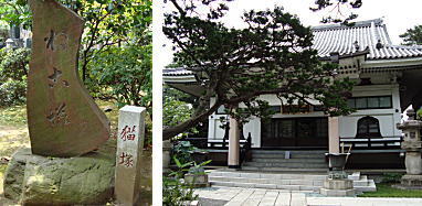 山門を入ると左に猫塚と書かれた碑が目に入ってくる。これは、三味線の皮につかった猫の供養碑だという。